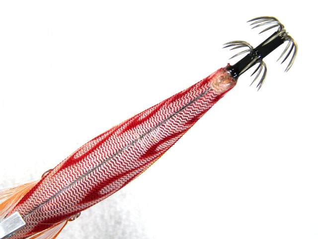 ラインアイとカンナを結ぶ軸から大きく逸脱しない、起伏を抑えたオリジナル流線型ボディによって、 向かい風や横風を受ける状況下においても安定した飛行姿勢と飛距離を可能に。また、縦方向の跳ね上げと横方向のダートアクション、 アオリイカが反応する水中姿勢、カンナの強靭性と鋭利なポイント(ハリ先)という複合的なテーマも実現。