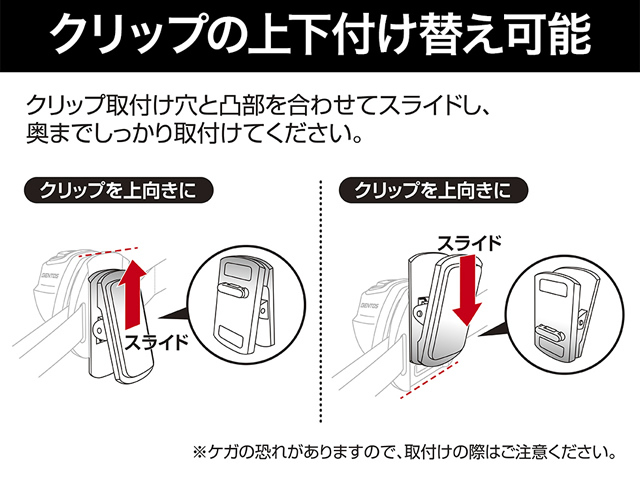 90°可動式ヘッド、クリップの上下付け替え可能、ヘッドプッシュスイッチなどなど。