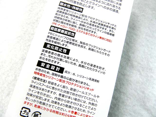 PEライン専用コーティング剤。 結びコブ、もつれ、糸ヨレ、絡みつき‥などあらゆるライントラブルを大幅に解消! 特殊フッ素樹脂とナノテクノロジーで最高のコーティング効果を発揮! 優れたスベリ効果で飛距離…