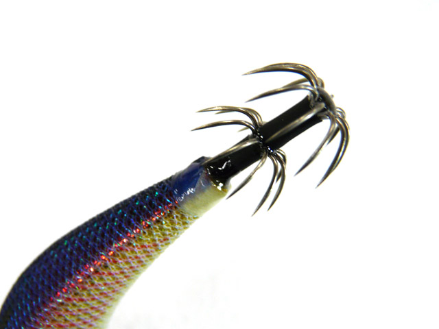 イカに対して視界から突如消えたかのように惑わせる瞬間的な高さ、さらには追い打ちでヒラを打たせフラッシングさせる。あたかも手負いのベイトフィッシュを演出したような仕上がりのフラッシュジャンプ性能。