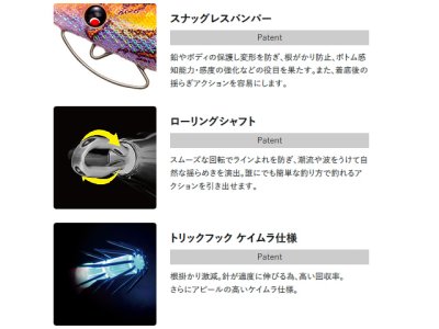 これまで培ってきたパタパタフットやローリングシャフト、トリックフック ケイムラ仕様、ウェーブモーションボディ、スナッグレスバンパーなどの特徴で、ハイプレッシャーな状況を攻略!