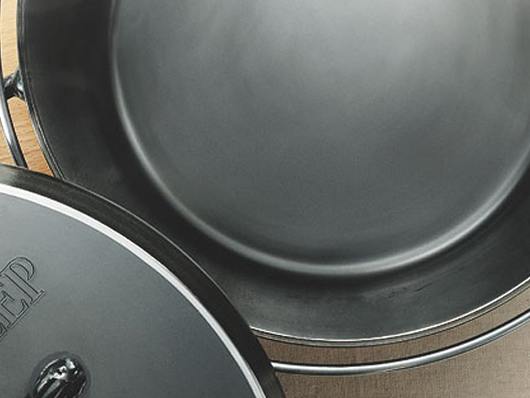 お手入れ簡単、耐錆性・耐衝撃性・耐温度変化に優れた「黒皮鉄板」製です。