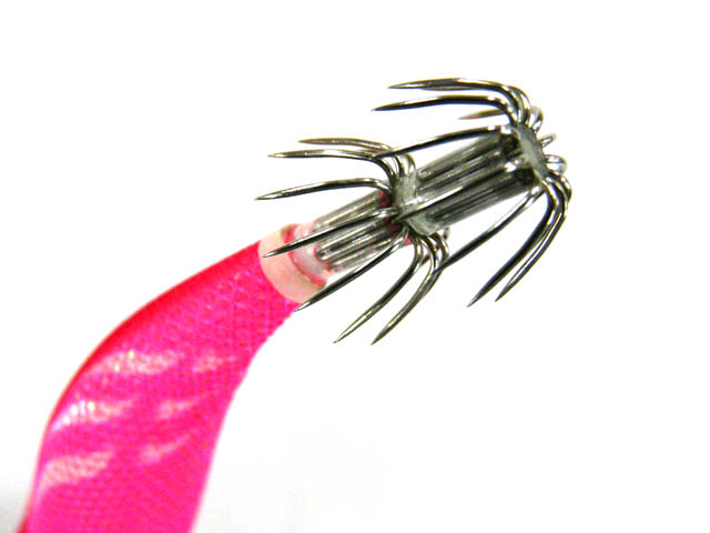 根掛かり回収率が高いストレートのトリックフックに、掛けたイカをバラしにくいラウンド形状をミックス。