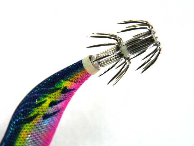 根掛かり回収率が高いストレートのトリックフックに、掛けたイカをバラしにくいラウンド形状をミックス。