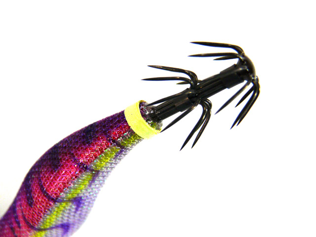 細軸+フッ素コートならではの、抜群の刺さりと強度を持った日本製カンナは、イカに警戒されないツヤを抑えたブラックカラーフィニッシュを採用。