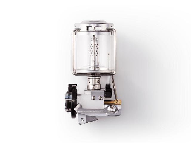 優しい光を生み出すマントル式のガスランタンは安定した光量でテーブルを照らします。