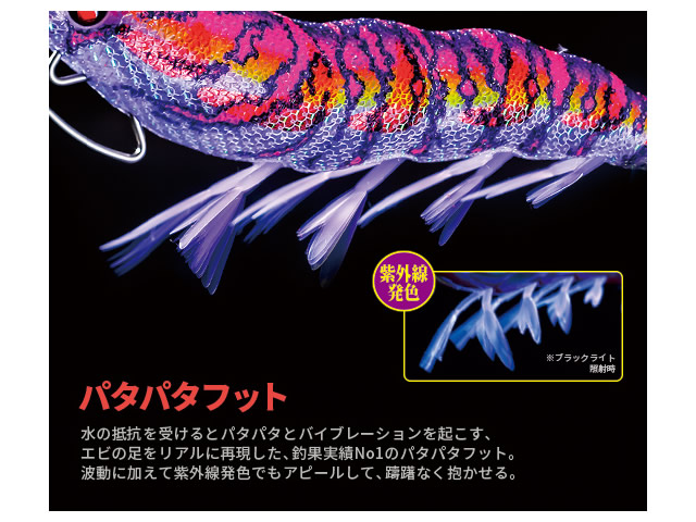 これまで培ってきたパタパタフットやローリングシャフト、トリックフック ケイムラ仕様、ウェーブモーションボディ、スナッグレスバンパーなどの特徴で、ハイプレッシャーな状況を攻略!