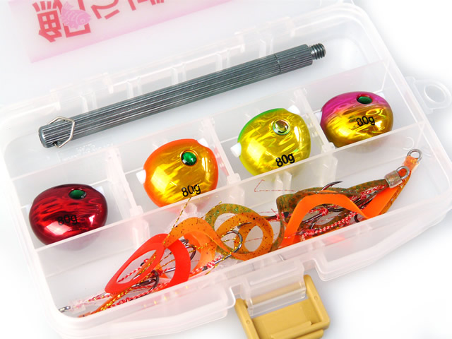 一番よく使うタングステンの80gをカラー別に4個。そして針掛かり抜群なSTART製「替えユニット M トリプルフック ショートカーリー」がカラー別に4本コンパクトな専用ハードケースに入っているので、そのまま船に持ち込んですぐに鯛ラバ釣りを楽しめます。