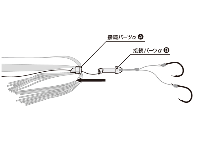 ワンタッチでフック交換可能な画期的なフック交換システム「α システム」のための接続パーツ。完全遊動システムのコンセプトそのままに実戦から生まれた新発想ユニットシステム。フックやネクタイ・スカートの速攻交換が可能で、収納時も別々に管理できるのでタックルケースでフックが絡み合うことがなく、ストレスフリーでタイラバゲームをより快適に楽します。