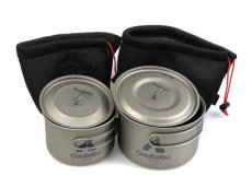 【期間限定特価30%OFF】ガオバブ(Gaobabu)☆GaobabuチタンポットSOLO 800と1300のセット(フタ・厚手メッシュ袋付き) GSET-23 [001-gset23]