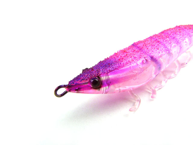 リアルなエビを追求したフォルムでイカを誘惑します。ボディー表面は布巻きではなくABS樹脂ボディーとなっており、イカが触ってきたときに違和感を与えないよう凹凸感、ざらつきのある表面加工。