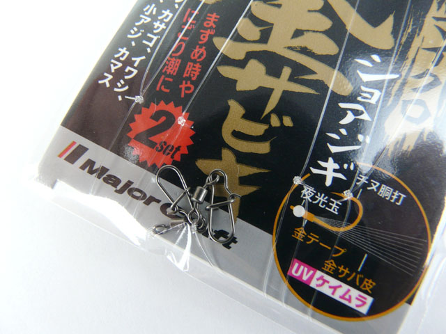 金テープと金サバ皮のケイムラ仕様、夜光玉といった目立ち度抜群の仕様が、ゴールド系ジグが強いエリアで是非使ってもらいたい超アピール系専用サビキ。