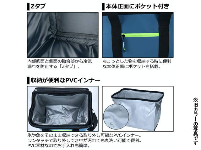 氷や魚をそのまま収納できるPVCインナー。ワンタッチで装着でき丸洗い可能。