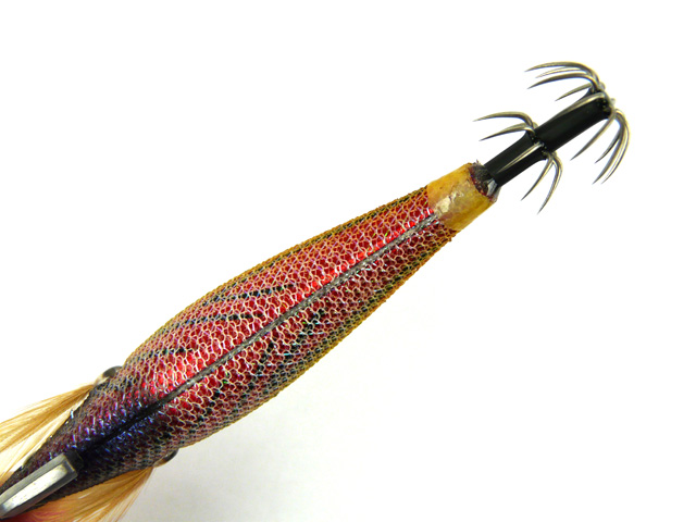 イカに対して視界から突如消えたかのように惑わせる瞬間的な高さ、さらには追い打ちでヒラを打たせフラッシングさせる。あたかも手負いのベイトフィッシュを演出したような仕上がりのフラッシュジャンプ性能。