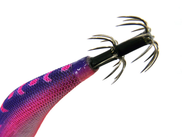刺さりと強度を求めるべく、ステンレス製国産化研フックを使用し、鮎針と同様の刺さりを実現。強靭な刺さりを誇る針先は3kgを超えるようなモンスターの厚い蝕腕さえ簡単に貫きます。