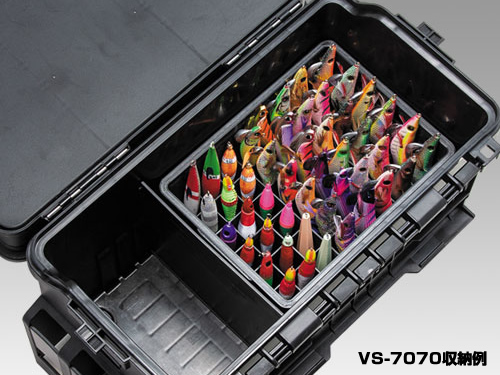 エギやイカメタルなどを48本立てて収納可能。取り出しやすく、格納しやすいのでルアーチェンジもスムーズです。