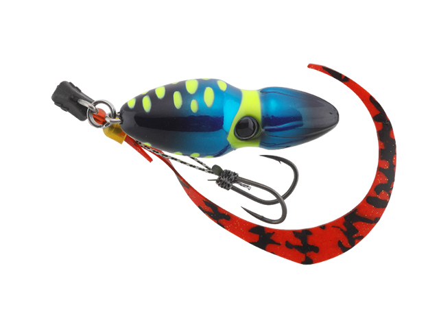 ヘッド、スカート、ネクタイが一連の従来の漁具型ルアーと異なり、ボディとネクタイ+フックを別パーツとして構成。