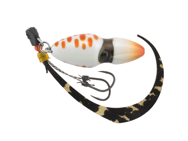 ヘッド、スカート、ネクタイが一連の従来の漁具型ルアーと異なり、ボディとネクタイ+フックを別パーツとして構成。
