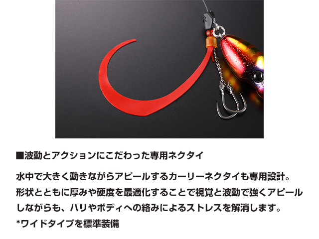 水の抵抗を抑えた整流効果によって潮流に負けない速いフォールとファストリトリーブでもバランスを崩さず安定したアクションを可能にしました。