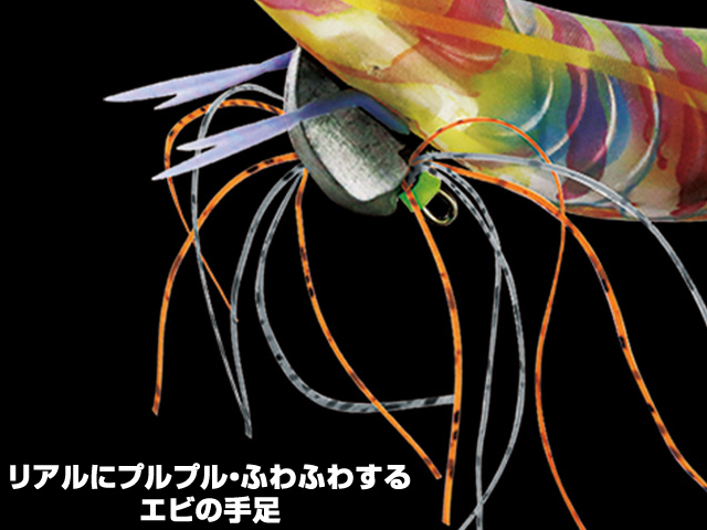 遊泳時に 「エビの手」 がプルプルと動き波動を生み、リアルな動きでイカにアピールする「エビの手」。