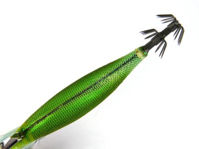 ・エギの背後から近づくイカに警戒されにくいよう、クリアカラーを採用したナチュラルフックエンド。