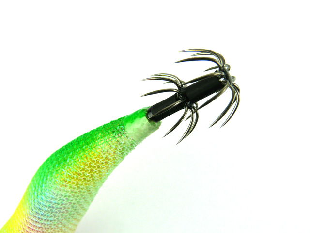烏賊が認識しやすく、見やすいとされるBLUE夜光を使用しています。ブルーグローは、光の波長が長いので深場や、濁りにも効果的。