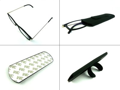 付属のラバー製ケースがスマホやスマホケースに貼ることができるコンパクトな老眼鏡。