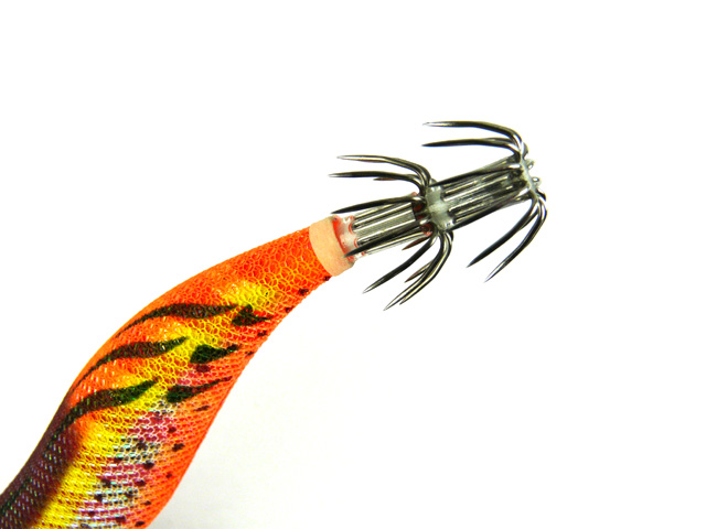 根掛かり回収率が高いストレートのトリックフックに、掛けたイカをバラしにくいラウンド形状をミックス。