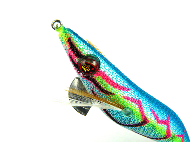 烏賊が認識しやすく、見やすいとされるBLUE夜光を使用しています。ブルーグローは、光の波長が長いので深場や、濁りにも効果的。