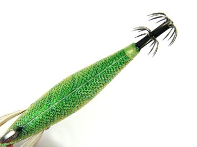 烏賊が認識しやすく、見やすいとされるBLUE夜光を使用しています。ブルーグローは、光の波長が長いので深場や、濁りにも効果的。