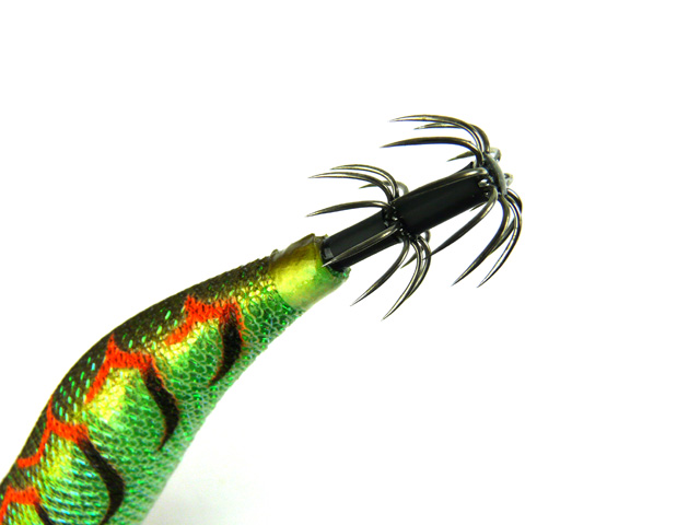 烏賊が認識しやすく、見やすいとされるBLUE夜光を使用しています。ブルーグローは、光の波長が長いので深場や、濁りにも効果的。