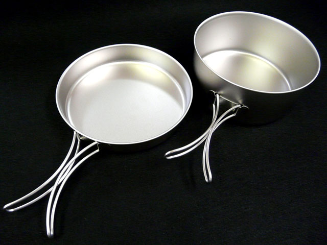 ステンレスより軽くて上部なチタン製のフライパンと鍋の2点セット。