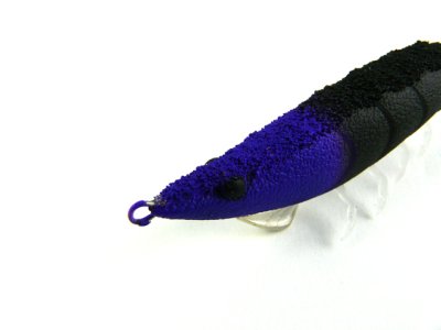 ロッドアクション後のポーズ姿勢はイカが抱きやすいとされる水平姿勢を保ち、アタリに備えます。ボディー表面は布巻ではなく、ABS樹脂ボディーとなっており、イカが触ってきたときに違和感を与えないよう凸凹感、ざらつきのある表面加工。