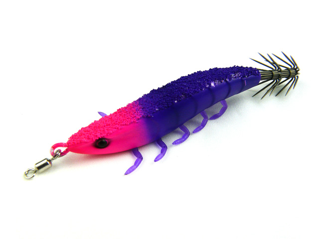 ボディー上部にはイカが触ってきた時に違和感を与えないように凹凸感、ざらつきのある表面加工を施し、ボディー下側に伸びた脚はボディーとは異なる軟質系素材(エラストマー)を採用し、フォール・アクション時に発生する艶かしいアクションが発生。