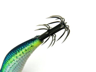 烏賊が認識しやすく、見やすいとされるBLUE夜光を使用しています。ブルーグローは、光の波長が長いので深場や、濁りにも効果的。