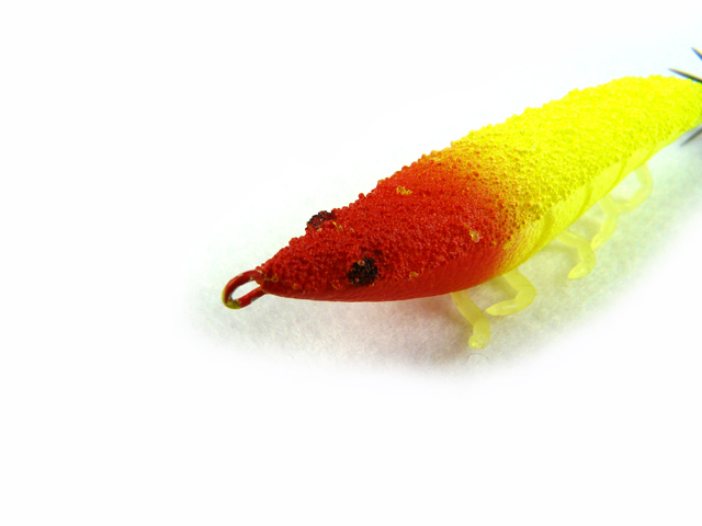 リアルなエビを追求したフォルムでイカを誘惑します。ボディー表面は布巻きではなくABS樹脂ボディーとなっており、イカが触ってきたときに違和感を与えないよう凹凸感、ざらつきのある表面加工。
