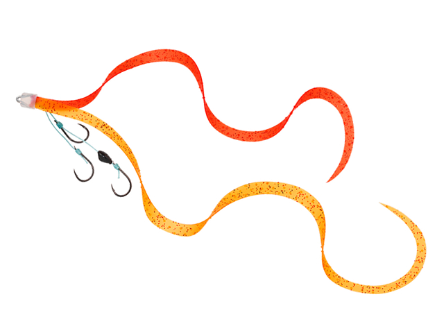 ダイワ独自の3D素材を採用したかつてない超ロングネクタイの「紅牙シリコンネクタイ3Dやり過ぎカーリー」と多点掛けしやすい3本針を採用。