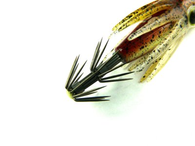 かかり抜群のフッ素コーティング仕様の国産針を使用。ボディーに触れ合わせたイカを逃さない!