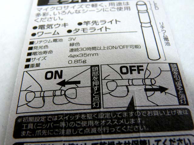 ワームにセットして集魚効果UP、ウキにセットして電気ウキに、
