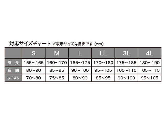 LLサイズ-身長 170〜180、胸囲95〜105、ウエスト 85〜95