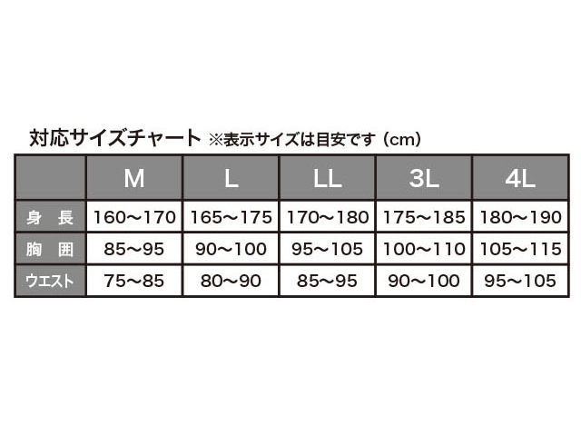 4Lサイズ-身長 180〜190、胸囲105〜115、ウエスト 95〜105