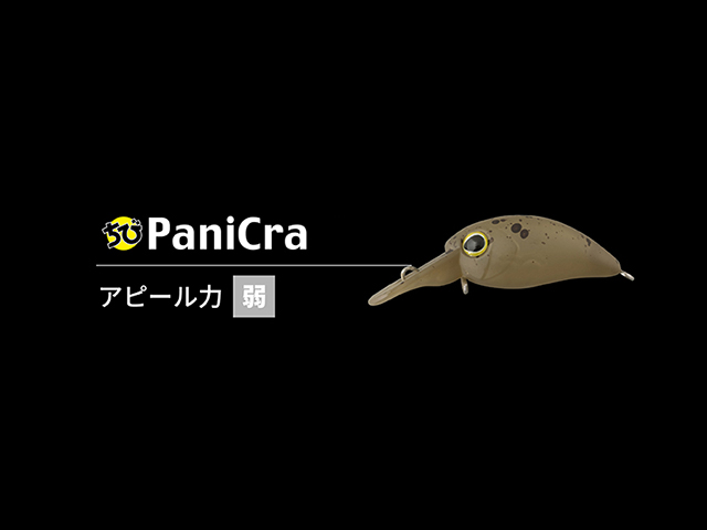 ちびパニクラは、魚の密度が濃く、遠くから寄せる必要がないシチュエーションで大活躍のクランクです。小さなボディと、控えめなアクション、スローリトリーブに対応した設計となっており、トラウトに口を使わせる絶妙な波動でアピールします。2フック仕様のため、貴重なバイトも逃しません。