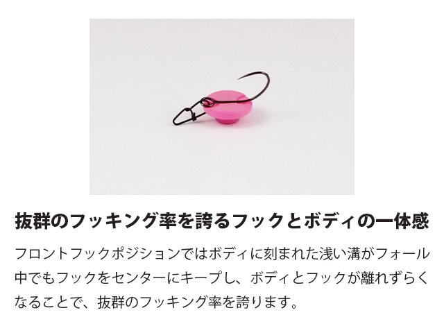 基本はフォールを繰り返す釣り方で、2つのウェイト(0.4g/0.6g)を使い分けてフォールスピードを調整可能です。