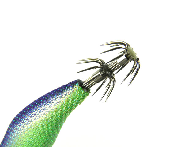 また、着底後の姿勢はヘッドのみを海底に付けた状態でしり上がりの姿勢をキープできるため、根掛かりの頻度減少にも効果的。薄型のヘッド形状はしっかりとしたダートアクションを生み出し広い範囲でイカを誘い、水平姿勢を維持した「ステイ」でイカの抱きやすい姿勢を生み出す。