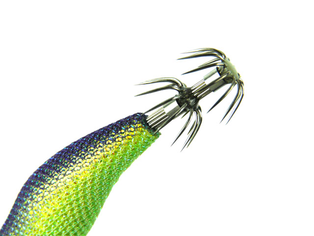 また、着底後の姿勢はヘッドのみを海底に付けた状態でしり上がりの姿勢をキープできるため、根掛かりの頻度減少にも効果的。薄型のヘッド形状はしっかりとしたダートアクションを生み出し広い範囲でイカを誘い、水平姿勢を維持した「ステイ」でイカの抱きやすい姿勢を生み出す。