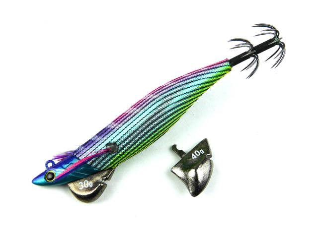 このエギの最大の特徴が、水深やそのシーンに応じてエギ本体についたシンカーをワンタッチで交換ができること! エギのサイズに応じた各ウエイトの「カチッとシンカー」で潮を制し、釣果につなげます。
