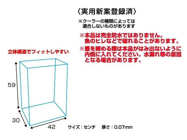 魚を直接クーラーに入れると、使用後の汚れ落としに時間が掛かる・・・そんな場合もこのシートを使えば、格段に洗浄が楽になります。全高を約60cmと高めに設定しているため、袋の裾をクーラー内に入れ込めば、蓋内部の汚れからもカバー可能です。