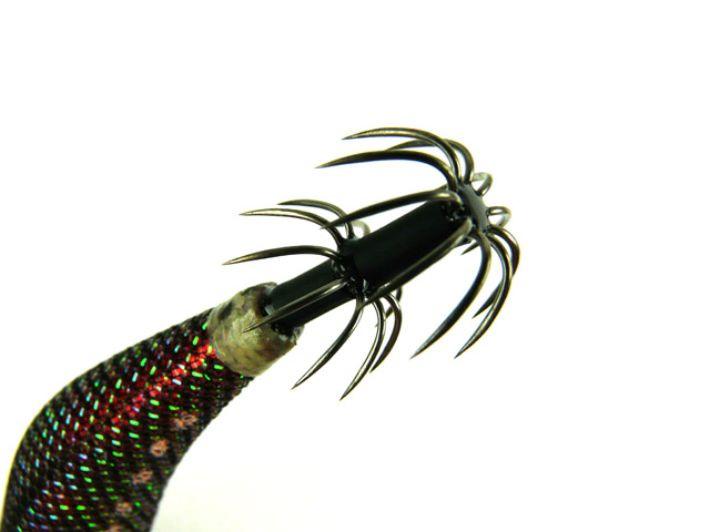 刺さりと強度を求めるべく、ステンレス製国産化研フックを使用し、鮎針と同様の刺さりを実現。強靭な刺さりを誇る針先は3kgを超えるようなモンスターの厚い蝕腕さえ簡単に貫きます。