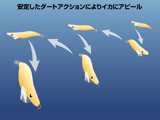 違和感のないフォールは不自然な動きを徹底的に排除した安定感のある姿勢により、警戒心の強いイカにも迷わず腕を伸ばさせます。