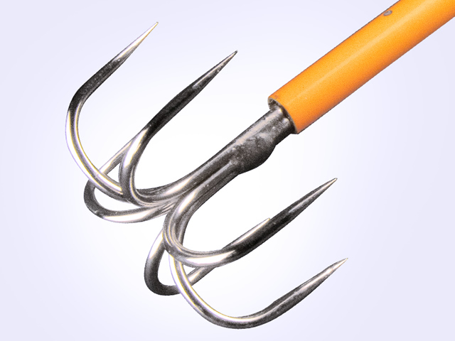 仕舞寸法32cmと非常にコンパクトでウエストバッグに吊り下げることもできる軽量化を実現しながらに、6本針の屈強なフックは健在で突然のモンスターアオリにも対応できる強度は健在。